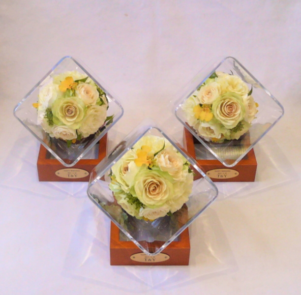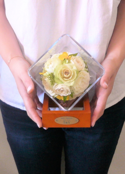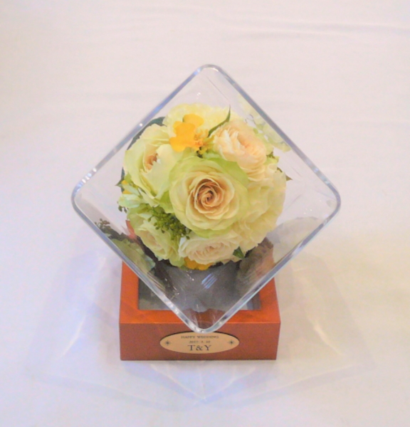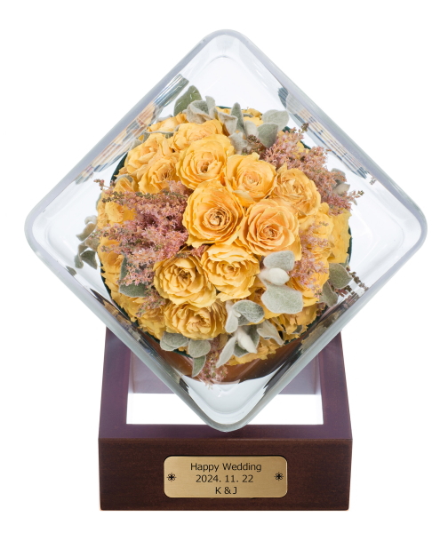 挙式で、披露宴で、パーティの会場で、感動の時をお二人とともに向かえた大切なブーケを美しいドライアートにアレンジ、加工いたします。