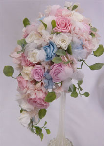 ホワイト・ピンク・ブルーローズのキャスケードブーケ |