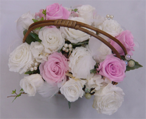 バスケット/ピンク&ホワイトローズブーケ |