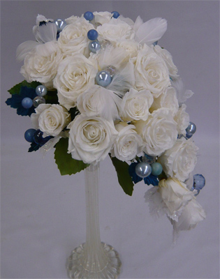 ホワイトローズ&ブルーパール セミキャスケードブーケ |