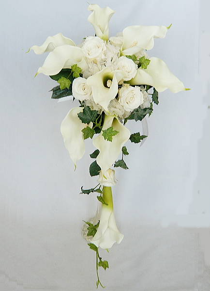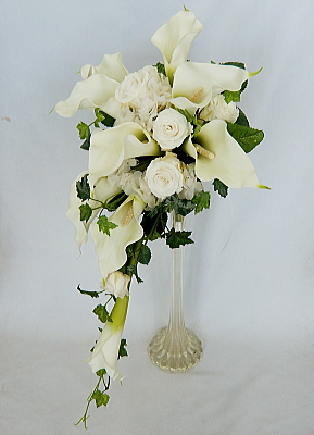 白カラー&ホワイトロ−ズ キャスケードブーケ |