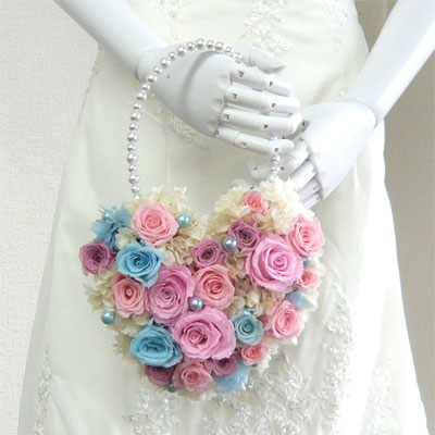 ピンク&ブルーローズハートブーケ |