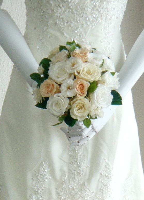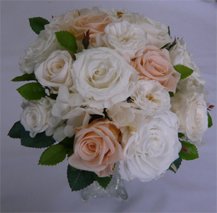 ホワイト&ピーチローズラウンドブーケ |