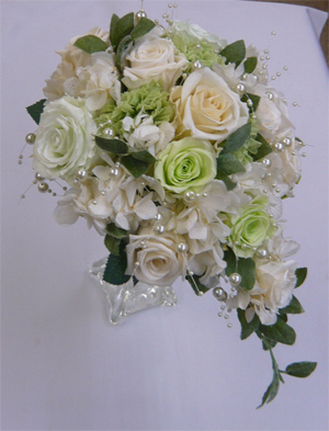 ホワイト&グリーンセミキャスケードブーケ (パール入り) |