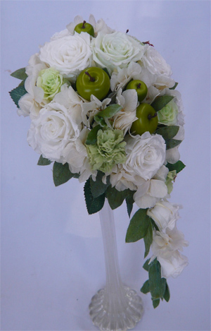 白バラセミキャスケードブーケ (青リンゴ入り) |