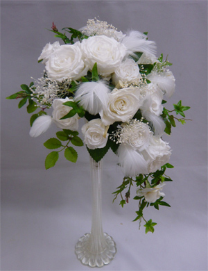 ホワイトオーバルブーケ (羽・かすみ草入り) |