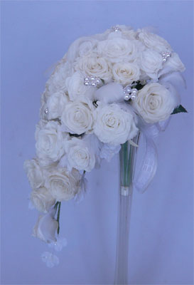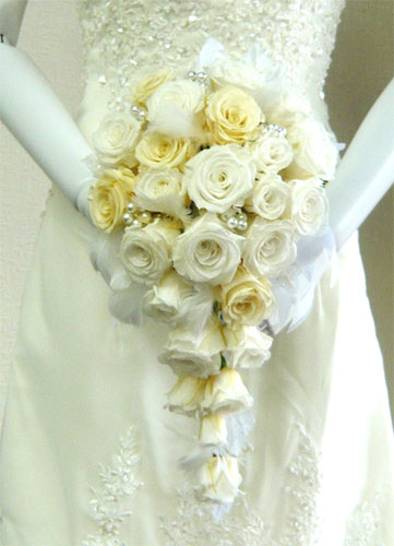 ホワイトローズ パール&ファーキャスケードブーケ |