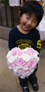 | 新郎様用ブートニア〔¥2100〕 ・ヘッド花〔¥3150〕 ・ブーケスタンド 〔¥1260〕は 別売りです。 |