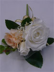 白&アプリコットバラ、かすみ草 ラウンドブーケ |