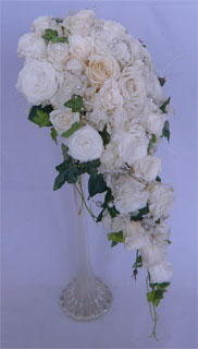 白&アイボリーローズ キャスケードブーケ (パール入り) |