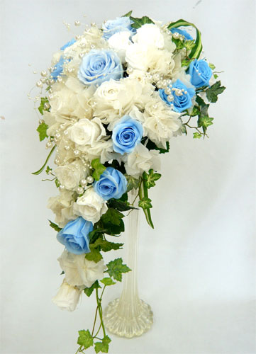 白&ブルー キャスケードブーケ |