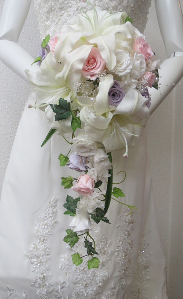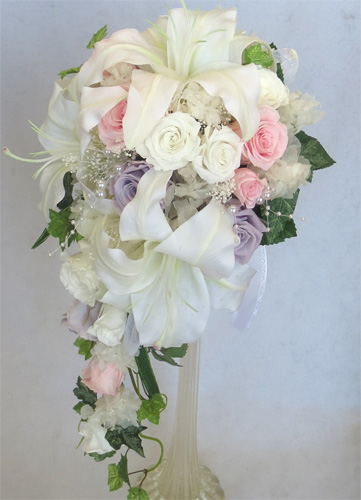 ゆり&ラベンダー・ピンクローズkタスケードブーケ |