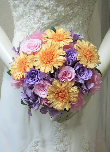 | こちらのブーケの保存には ブーケケースS〔¥3150〕 サイズがお勧めです。 |