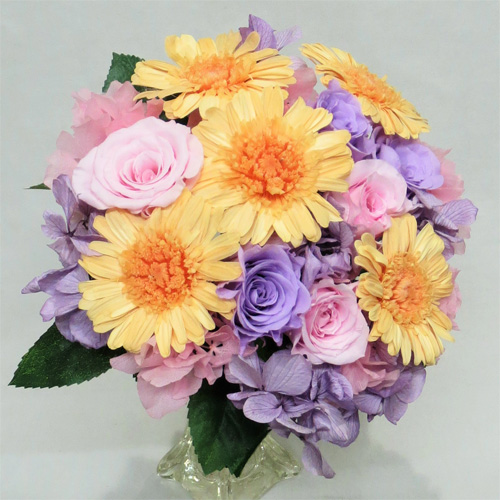 ガーベラ・バラ・あじさい〔プリザーブドフラワー〕、