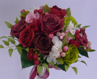 クランベリーとモスグリーンのラメブーケ |