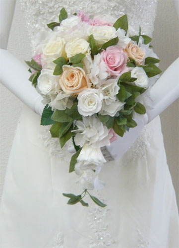 ホワイト&ピーチ セミキャスケードブーケ |