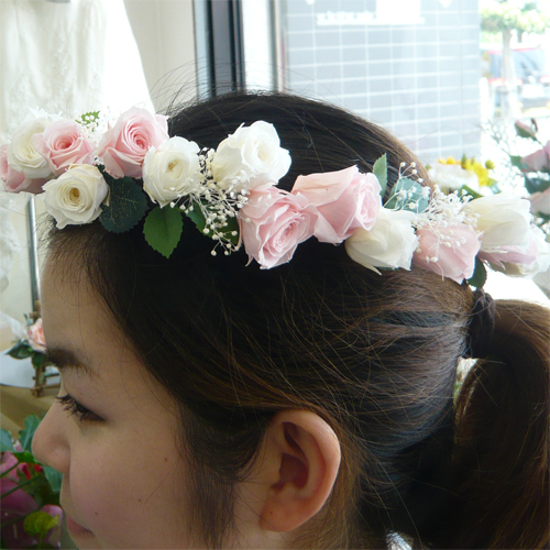 ホワイト&ピンク 花かんむり |