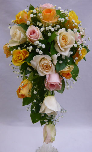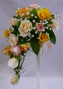 オレンジ・淡オレンジ・イエローローズキャスケードブーケ |