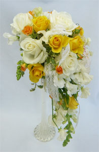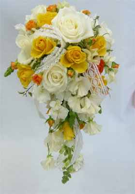 オフホワイト&黄色バラ キャスケード |