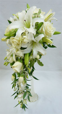 白ユリ・バラ・デンファレ・ルスカス・グリーン |