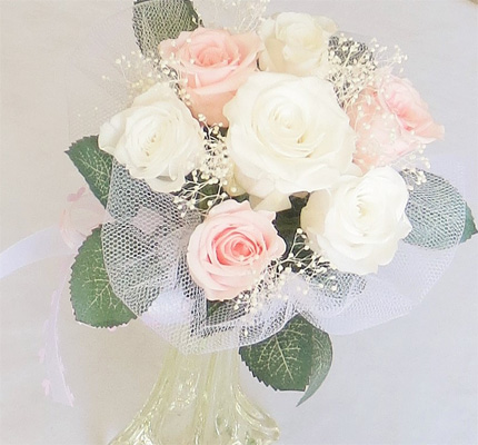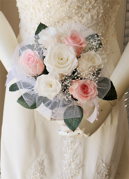 プルズ用ミニ 白&ピンクバラ&かすみ草ブーケ
