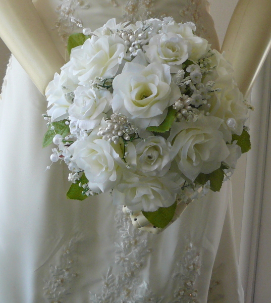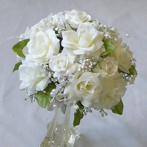 tb109 ホワイトローズ パール入り | トス&プルズブーケ | ウエディングブーケセレクトショップ | ブルーマート flower studio
