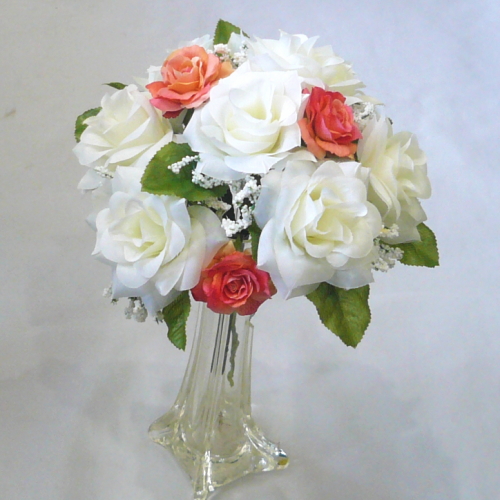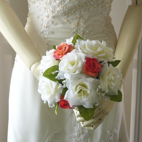 造花トス用ブーケ ホワイト&オレンジローズ