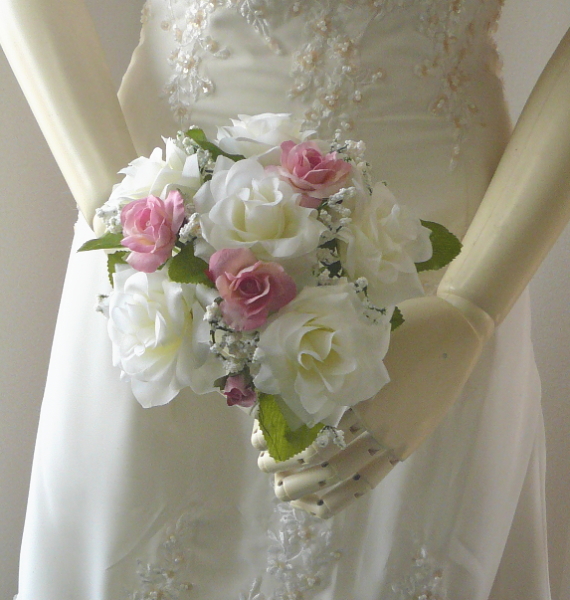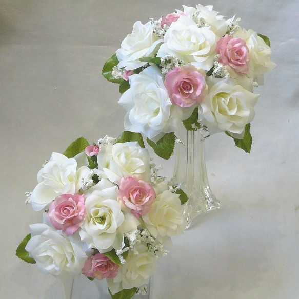 tb14 ホワイト&ピンクローズ 2P | トス&プルズブーケ | ウエディングブーケセレクトショップ | ブルーマート flower studio