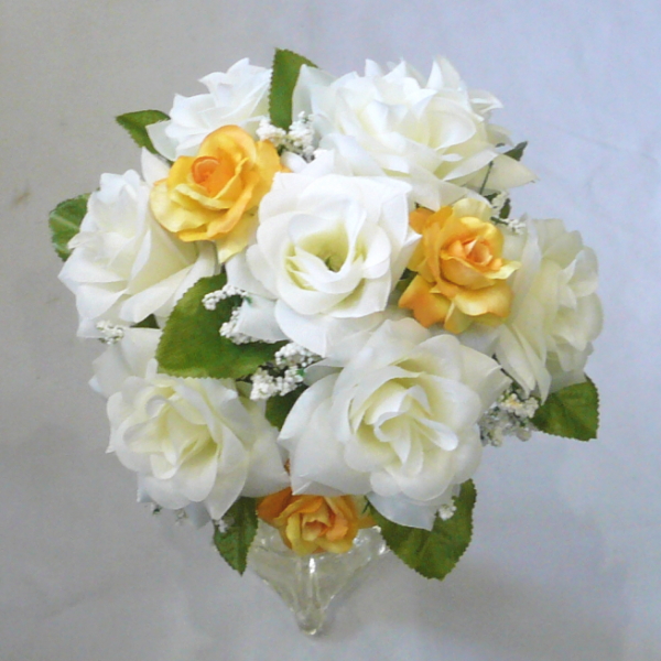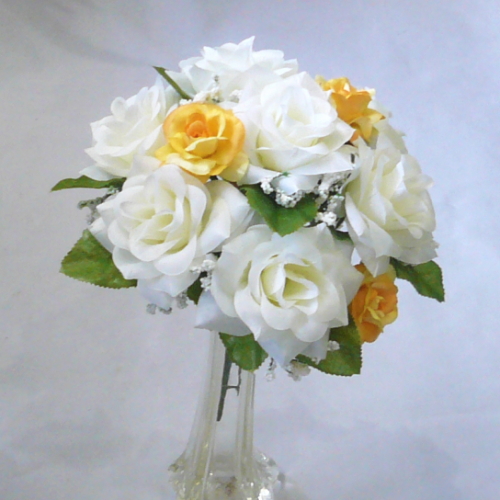 造花トス用ブーケ ホワイト&イエローローズ ブートニア付き