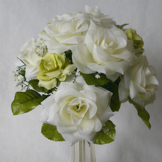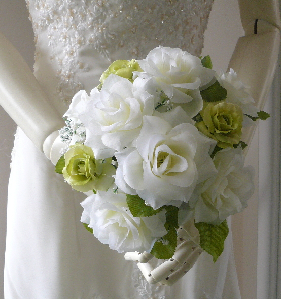 造花トス用ブーケ ホワイト&グリーンローズ