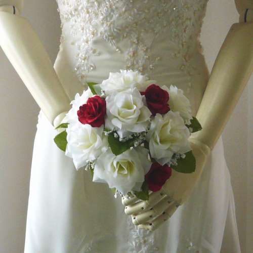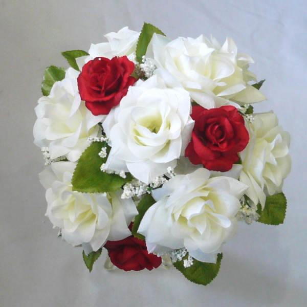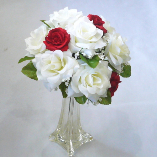 造花トス用ブーケ ホワイト&レッドローズ