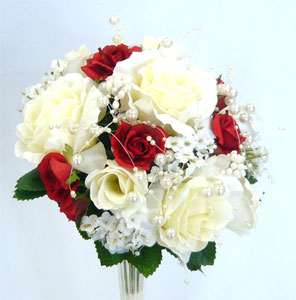 tb33 ホワイト&レッドローズ パール入り | トス&プルズブーケ | ウエディングブーケセレクトショップ | ブルーマート flower studio