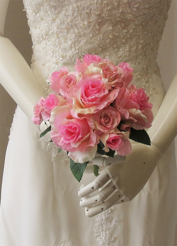 造花トス用ブーケ ピンク&ピンクローズ ブートニア付き
