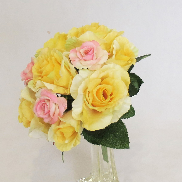 アートフラワー〔造花〕ブーケ/ブライダルブーケ/トス用 イエロー&ピンク