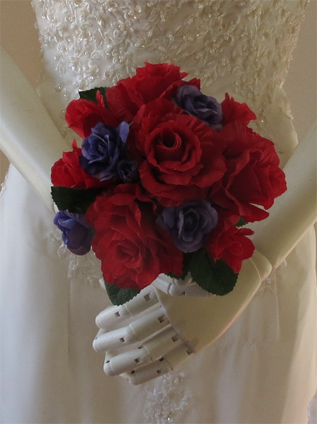 造花トス用ブーケ レッド&パープルローズ ブートニア付き