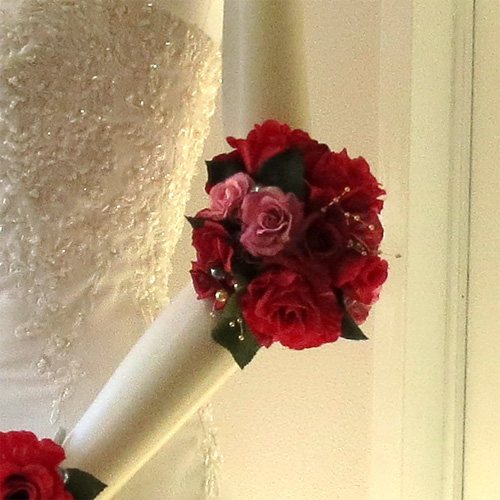 ドレスのお色、ブーケのイメージでリボンをつけさせていただきます。 |