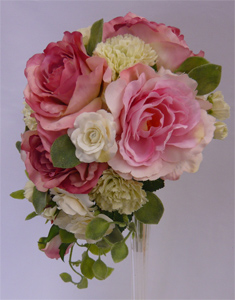 ピンクバラとグリーンカーネのセミキャスケードブーケ |