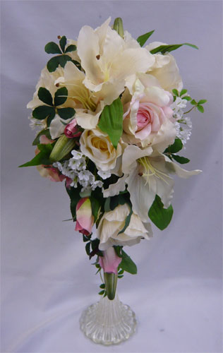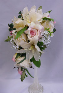 アートフラワー〔造花〕ブーケ/淡ピンクゆりキャスケードブーケpad