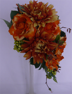 オレンジバラ&ヒマワリキャスケードブーケ |