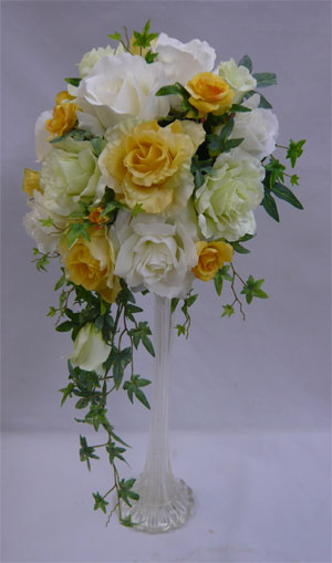 白バラ・黄バラキャスケードブーケ(グリーン入り) |