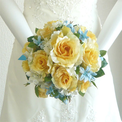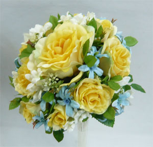 黄バラ・水色・白小花 ラウンド |