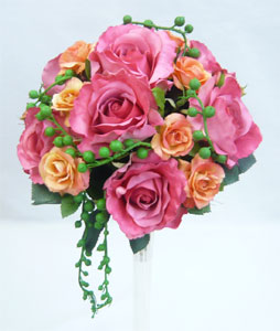 濃いピンクバラ&オレンジ ラウンドブーケ |