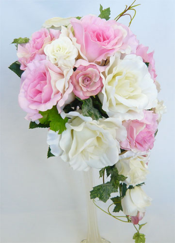 ホワイト&ピンクローズ セミキャスケードブーケ |