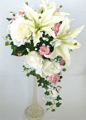 ユリ・バラ・かすみ草キャスケード(ピンク小花入り) |