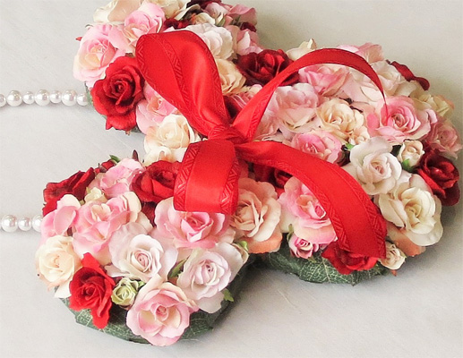 ドレスのお色、ブーケのイメージでリボンをつけさせていただきます。 |