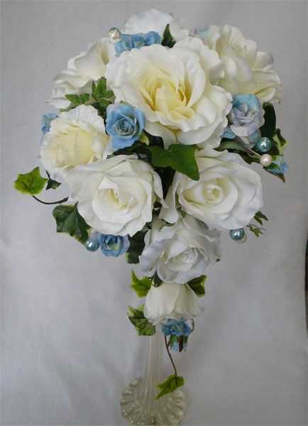 白バラ&パープル・パウダーブルー セミキャスケード |