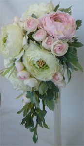 白ラナンキュラスとピンクティのキャスケードブーケ |