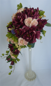 ワインカラーのキャスケードブーケ |