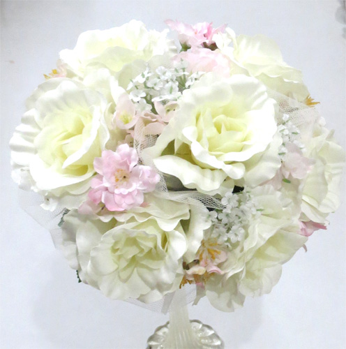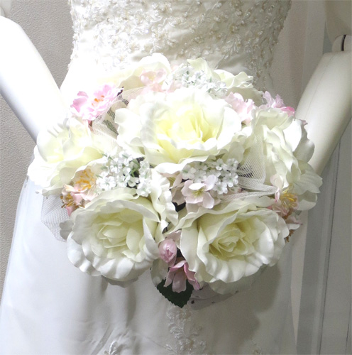 桜&白バラ ラウンドブーケ |