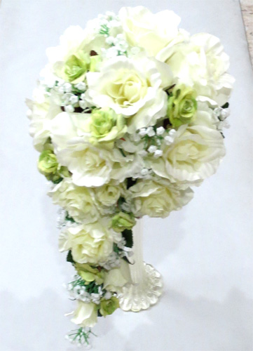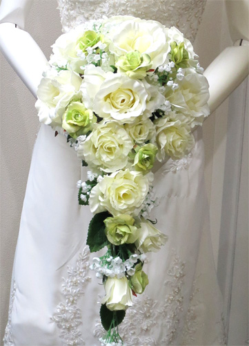 白バラ&かすみ草キャスケード(グリーンミニバラ入り) |